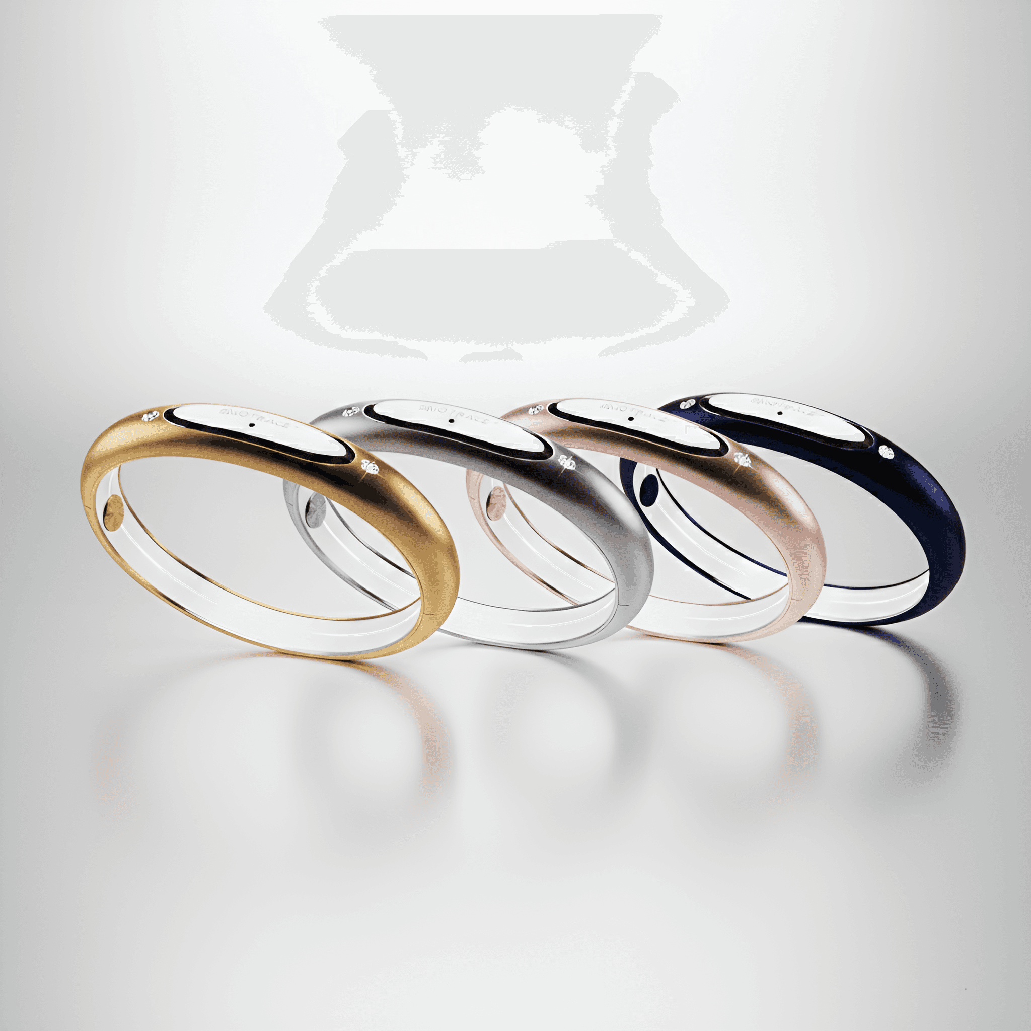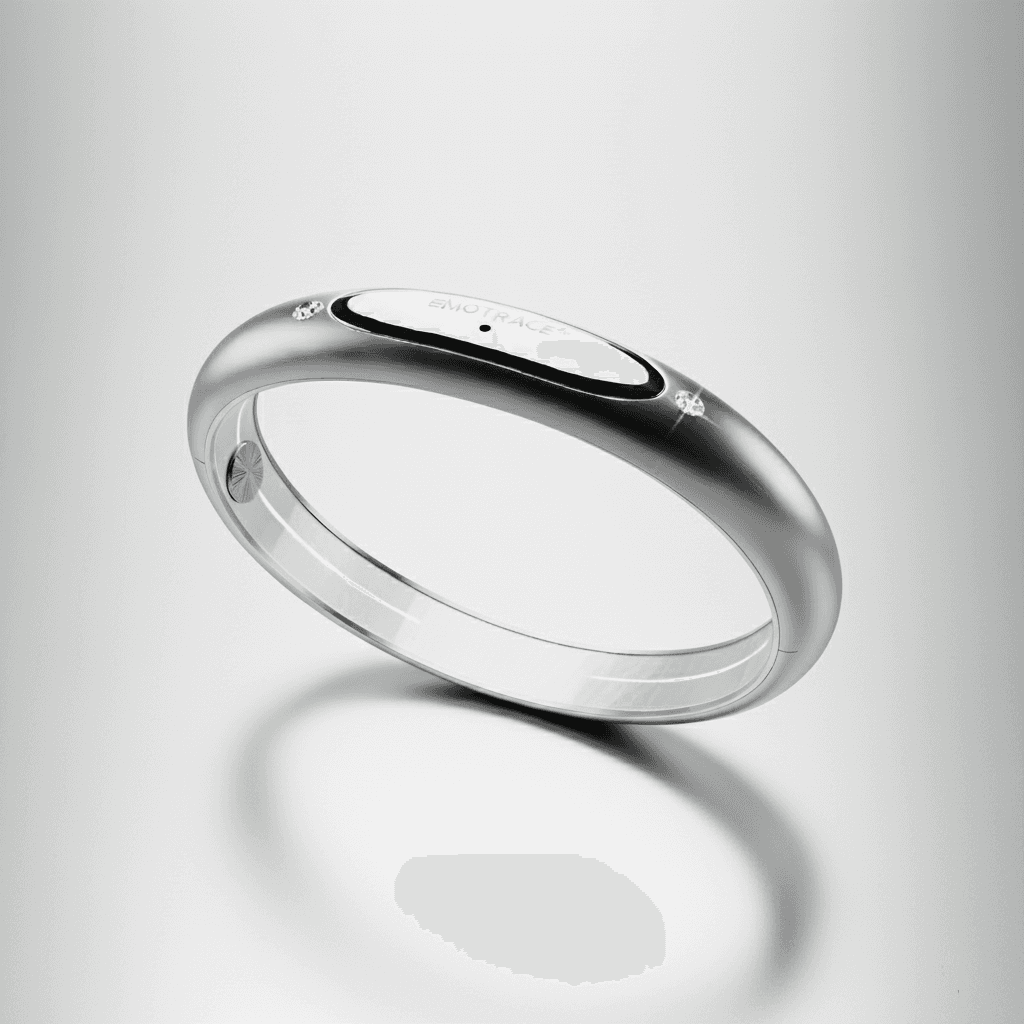 Crafted from brushed titanium alloy and adorned with a minimal zircon accent, EMOTRACE conceals cutting-edge emotion-sensing technology within elegand design.